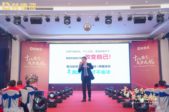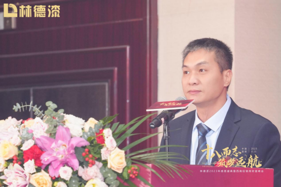 會議伊始,廣東林德涂料有限公司董事長羅汝儉對參加本次大會的各位嘉賓和經銷商們表示誠摯的歡迎,并作開場致辭。羅董表示:“18年前,林德漆只是一個初出茅廬的品牌,尚未在行業中嶄露頭角。然而,憑借著我們對行業的熱愛和執著,我們堅定地走過了一條充滿挑戰的道路。今天,我們有幸站在這里,與各位共享林德漆的成長果實,感受我們在這個行業中的影響力和地位。”