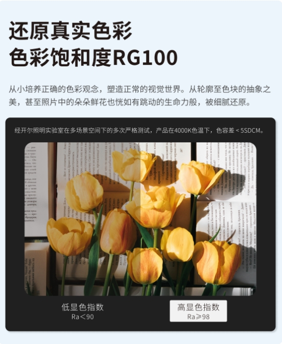 Ra98高顯色,逼真呈現(xiàn)原生色彩