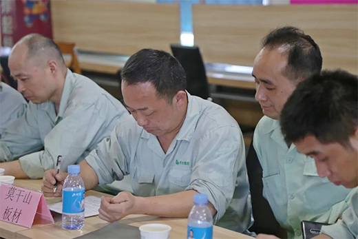 在安全培訓試講環節中,板材、地板、全屋定制、科技木公司四個小組代表自由擬定培訓主題輪流上臺作安全培訓試講。