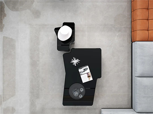在灰色大理石的基調里,白色沙發點綴其中,既中和了空間的溫度又構造了美好生活的音律。