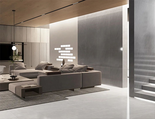 大面積用索菲亞米灰在地面,色調十分柔和,沒有強烈的視覺沖擊,置身其中,享受彌足珍貴的安寧,生活簡約但絕對不簡單。