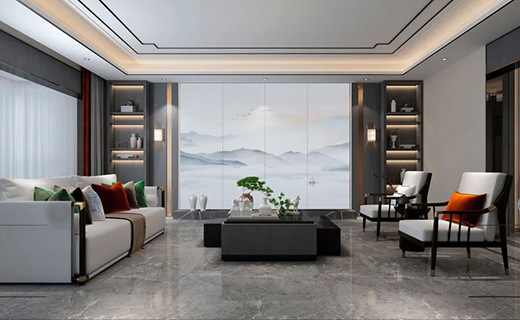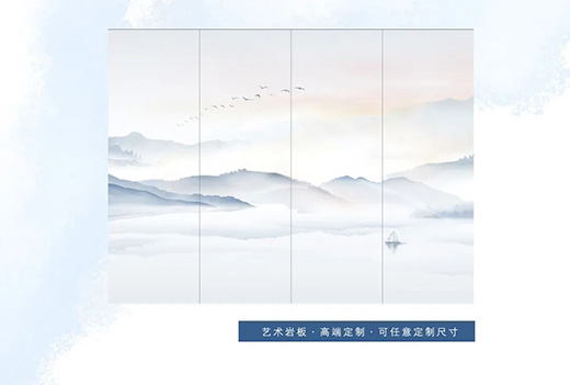 青山含遠黛,白云空自流,朦朧的遠山,籠罩著一層輕紗,影影綽綽,在飄渺的云煙中忽遠忽近,若即若離,就像是幾筆淡墨,抹在藍色的天邊。畫面中淡墨遠山,若隱若現,霞影絢爛,賦予空間靜謐雅致的意境。