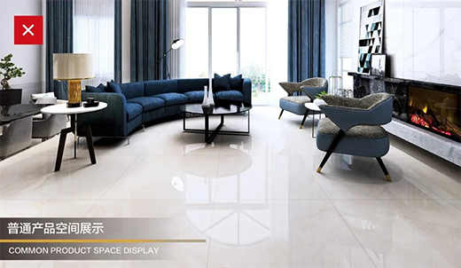 研究表明,反射強的光感會對人眼造成不良影響,像普通瓷磚這種超越人眼舒適度曲線的高光,不僅給人冷冰冰的感覺,而且整體鋪貼單調平滑,缺乏細節,原本溫馨的家變成了“了無生趣”的空間。