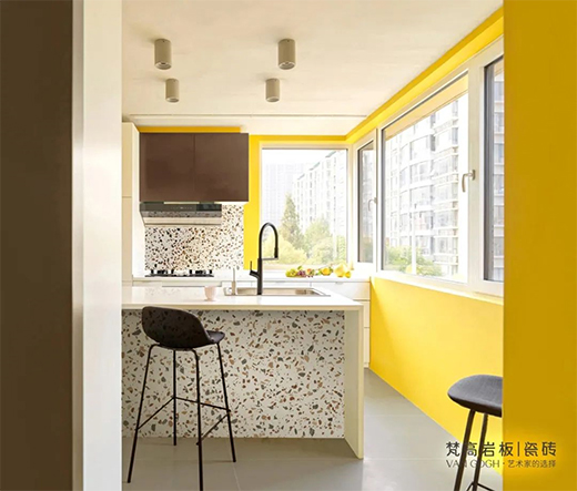 梵高【點彩印象】,從修拉的作品中獲取靈感,將「點彩藝術」技法融入到「彩色水磨石」肌理的重構當中,不規則的純色顆粒,像油畫色點散落在磚面,看似漫不經心,實則色澤、大小和分布均經由精心設計,繽紛爛漫,又富于藝術氣息。