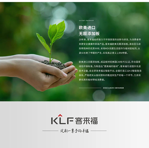 客來福家居作為國民品牌,從中國家庭需求出發,一直潛心研究更環保的家居材料。客來福在產品的環保賽道上一直深耕,相繼推出了歐美無醛添加板、福芯板等健康產品。