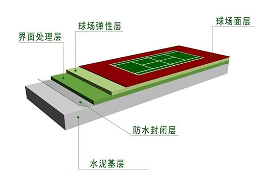 硅pu球場結構層籃球場地基礎有土質、水泥、瀝青和木質等。有條件的一般都用木質場地。土質、水泥和瀝青場地比較經濟,基層單位使用較多,但要注意地面平整,以防出現傷害事故。