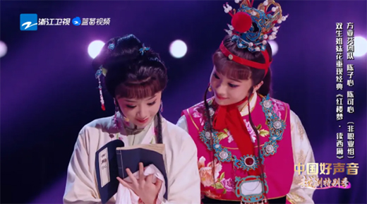 本期越劇舞臺的精彩節目從創新+傳承的角度,展現了越劇的無限活力。《梁山伯與祝英臺·回十八》,演繹三重不同個性的梁山伯,不同的服裝設計同樣的仙氣飄飄,讓人大開眼界;節目中更是出現了以時下流行的“脫口秀”為載體,融合潮流音樂、說唱等元素的“越劇脫口秀”,成為全場最大的亮點;來自越劇之鄉——嵊州的雙胞胎姐妹陳子心、陳可心,演繹無數越劇迷耳熟能詳的《紅樓夢》經典片段,俊美的扮相讓茅威濤和鄭云龍夸贊“仿佛從畫中走出來”。