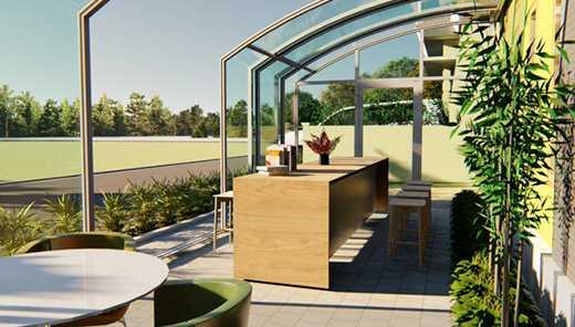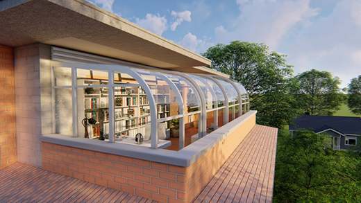 移動陽光房是采用模塊式組合而成的設計,具備全封閉或全展開的模式。如果室內悶熱,業主可以通過遙控器進行一鍵開合整個陽光房,增強空氣對流,降低室內溫度。