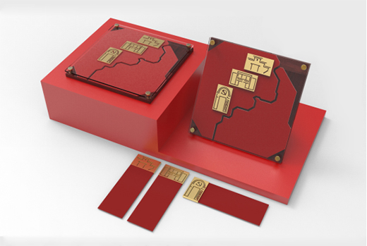 設計理念:本套“紅行滬上”系列紀念門票選擇了魯迅故居、中共一大會址和四行倉庫遺址三處有代表性的紅色文化景區,將景區門票與紀念幣相結合。這不僅賦予文創紀念品一定的使用價值,還具有很高的收藏價值。同系列的收納展示版造型由上海地圖抽象而來,收納紀念門票的位置對應了相應景點的地理位置。這種新奇的方式讓游客更愿意去參觀紅色文化景點,對了解到的紅色文化的印象更加深刻,同時也讓游客更愿意與他人分享這段有趣的經歷,促進人們交流學習,傳播了紅色思想文化,更拉近的人與人之間的距離。